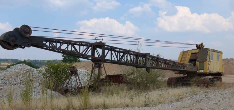 14 m Ausleger, mit 1 Schleppschaufel und 2 Greifer