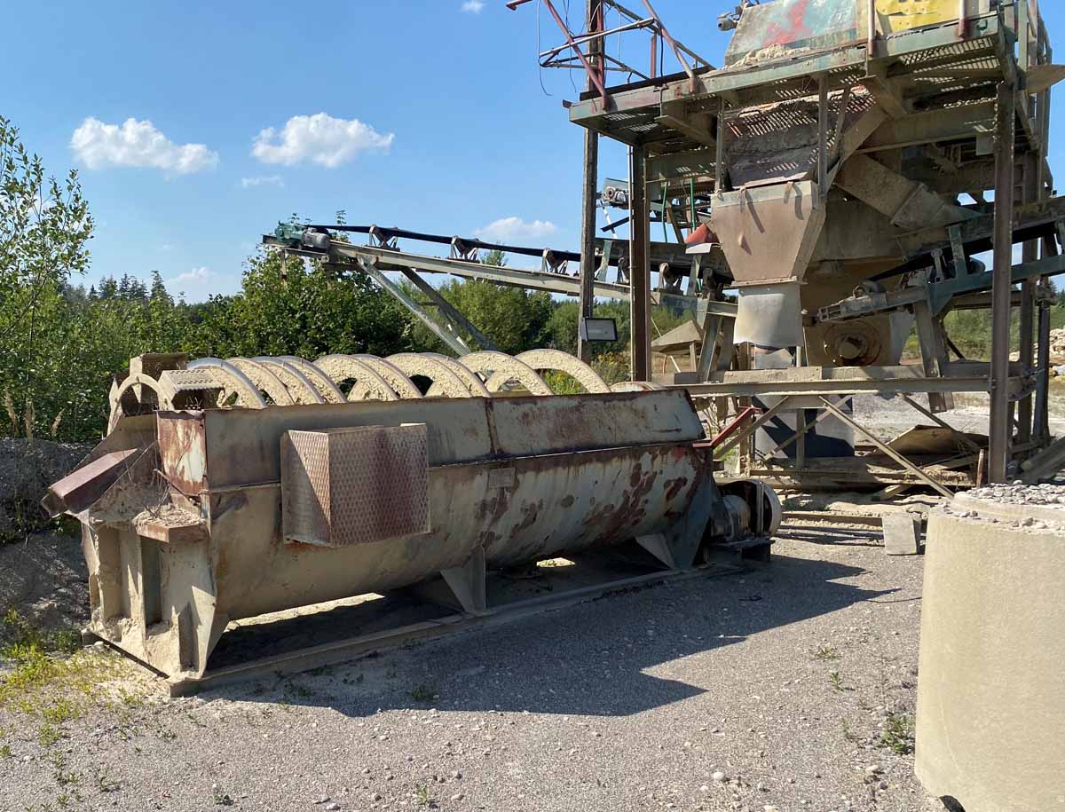 Kufenmobile Waschanlage AT GmbH, Typ Roberg, Waschsiebeinheit Größe 1100 x 3000 mm, mit Sandschnecke und Schlammdekanter, Fraktionen 16/32 4/8 0/4, Leistung circa 40-60 to/h, Anlage ist bis zuletzt gelaufen.