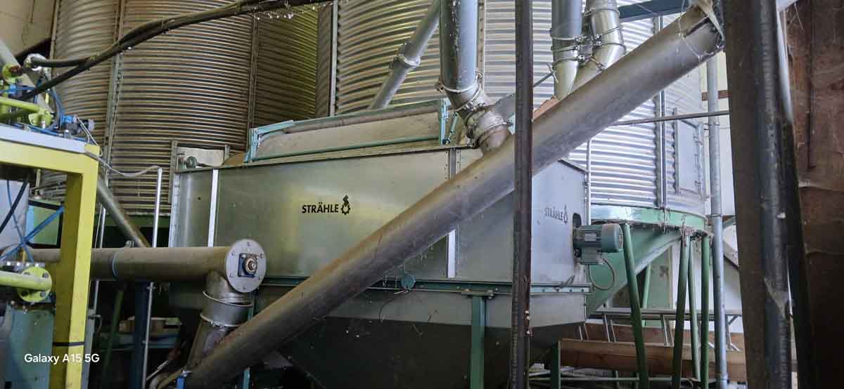 Saaten/Öl-Presse bestehend aus: Fördertechnik, Saatreiniger, Saatvorwärmung/ Kuchenkühlung, 2 Stück Seiherschneckenpresse SK130/3 inklusive Presskuchenpelletierung, 1 x 8000 l Tank inkl. Verrohrungstechnik, Filter Vollautomatik 30 V für bis zu 3 x SK 130, 1 Schaltschrank mit kompletter Elektrik und Verkabelung. Optional sind 2 Schüttgut Innensilos für die Presse (mit je 50 cbm) erhältlich. Die Anlage wurde sehr wenig genutzt.